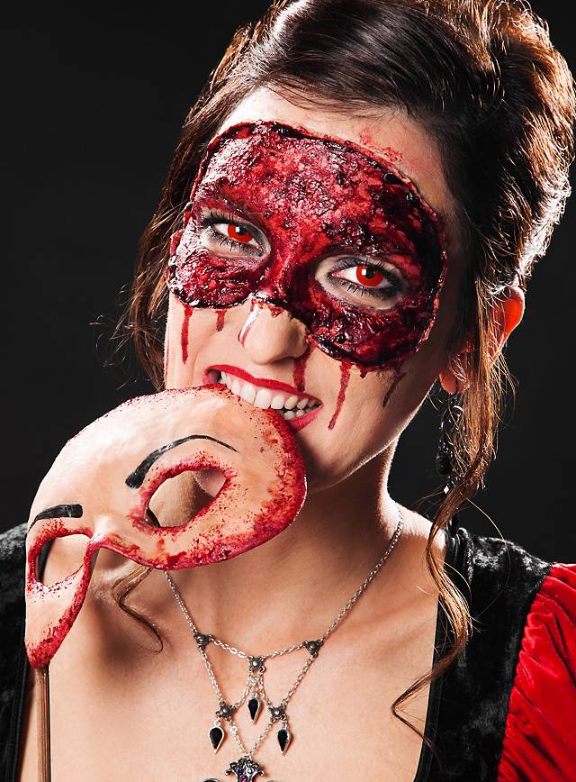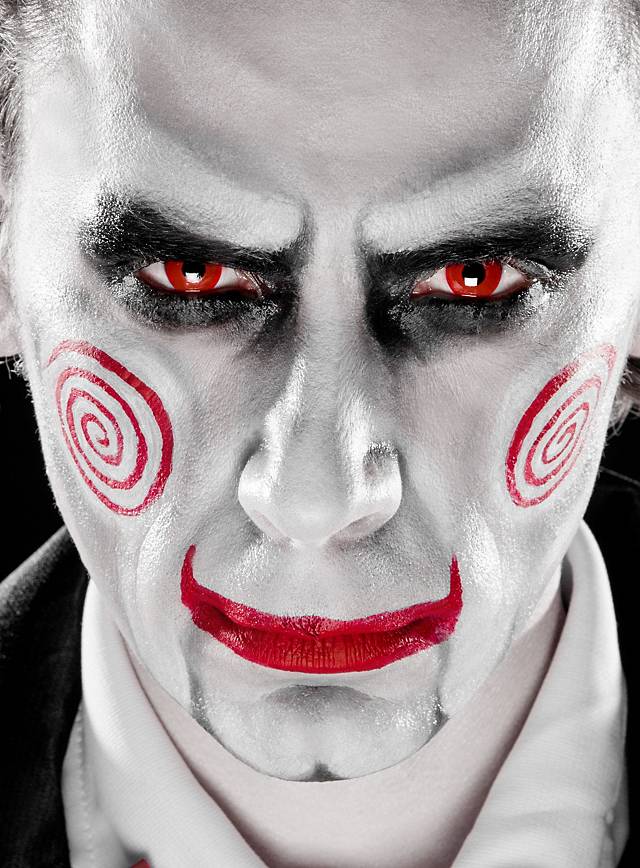 Satan Effect, reyðar, linsur. Pakkin inniheldur eitt par av linsum uttan styrki, ið k