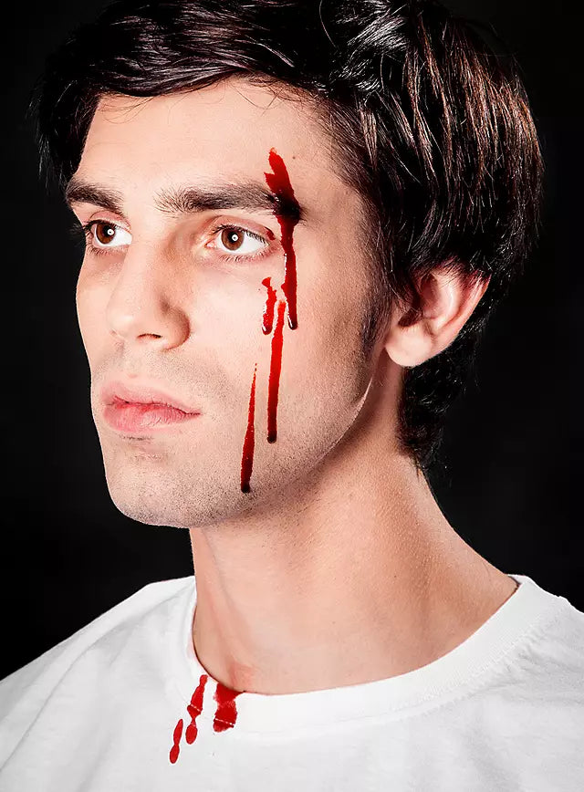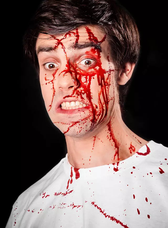 Fare! Dette produkt er ikke et legetøj. Kun beregnet til unge og voksne på 14 år og derover. Må ikke anvendes i nærheden af eller i øjnene. Må ikke anvendes direkte på læber eller slimhinder. Produktet bør ikke bruges, hvis du er allergisk over for de angivne ingredienser. Vær forsigtig med tekstiler og overflader - falsk blod kan give permanente pletter. Ikke egnet til indtagelse.